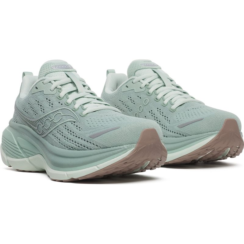 Den tydligt rundade häl- och framdelen på mellansulan ger en mjuk och avlastande känsla. Den breda sulbasen kompletteras med ett tunt lager av Sauconys PWRRUN som placeras mellan yttersulan och mellansulan vilket stabiliserar foten på ett smidigt och säkert sätt. Den unika FORMFIT-passformen skapar en optimal och individuellt omslutande passform runtom hela foten. Detta minimerar pronationspåverkan för fotleden, vilket skapar skonsammare förutsättningar för dig som löpare. Ovanifrån kramas foten om på ett bekvämt och stabilt sätt med hjälp av en formbar, sömlös och väl ventilerande mesh ovandel, som kombineras med ett integrerat snörningssystem. Ovandelen består dessutom av återvunnet material, för att reducera vårt ekologiska fotavtryck. Yttersulan i slitstarkt XT900-gummi är optimerad för låg vikt och bra grepp.