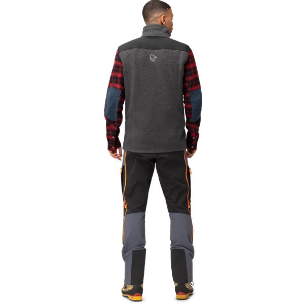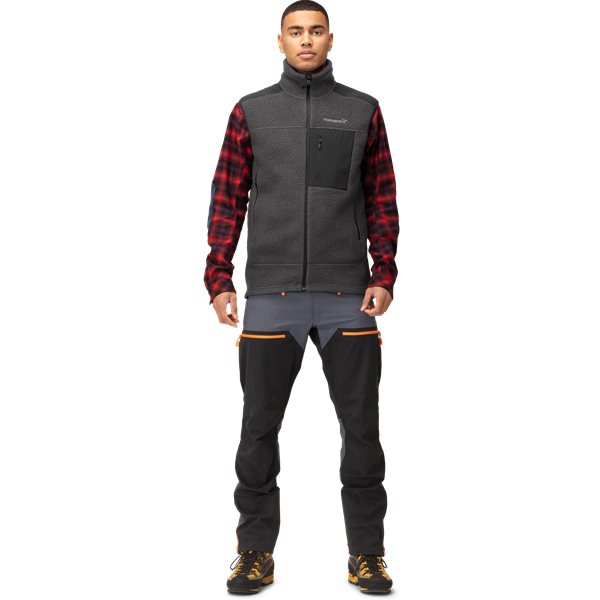 Norrøna Trollveggen Thermal Pro Vest M's är Norrønas varmaste, mest hållbara fleeceväst för herrar, som är framtagen för bergsklättring men fungerar lika bra för allmänt friluftsbruk när temperaturen sjunker. Västen tillverkas av Polartec® Thermal Pro® med unik stickteknik, som skapar luftfickor för att fånga luft och bibehålla kroppsvärmen, och som har ett utmärkt förhållande mellan värme och vikt. Materialet är bekvämt och har utmärkt ventilation, och är snabbtorkande, mycket hållbart och motståndskraftigt mot noppor. Västen har även två handvärmarfickor, en bröstficka, en varm och väderskyddande krage, och en normal passform med något längre baksida för extra skydd.